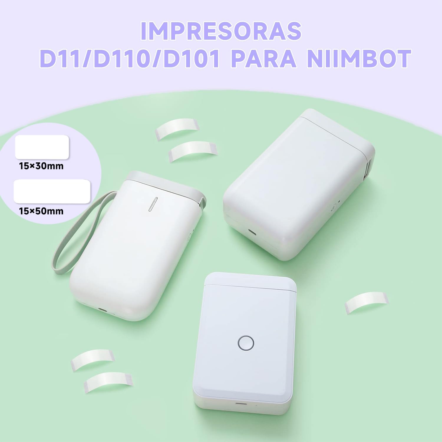 Compatibilidad confirmada: Niimbot D11 / D110 / D101 / H1 / H1S (y otras impresoras térmicas portátiles que usen rollos de 15 mm con gap).
