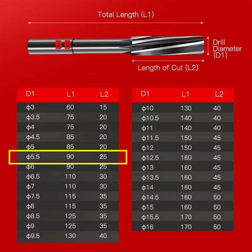 Rimador / Escariador / Rectificador de Recámaras 5.5 mm – Herramienta de Precisión para Maquinado CNC