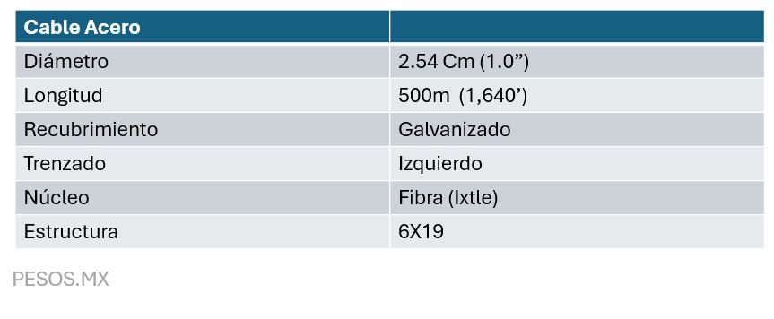 Cable de Acero Galvanizado 1" (2.54 cm) - 6x19 Núcleo de Fibra Ixtle - 500 metros
