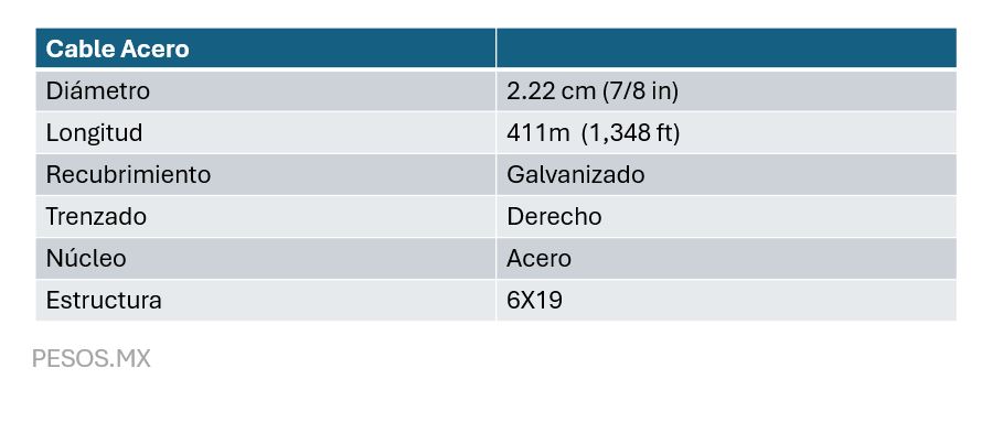 - Núcleo: Acero (IWRC - Independent Wire Rope Core)